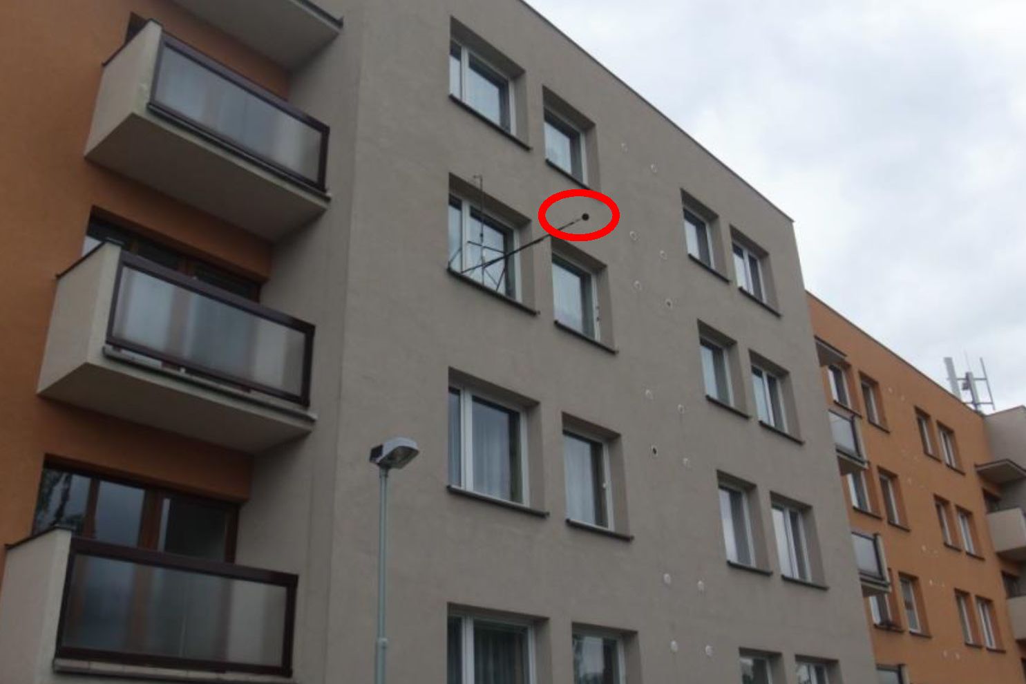 Mikrofon upevněn na stativu ve výšce 7,1 m nad terénem v úrovni oken obytných místností ve 3. NP, 2 m před fasádou, 15 m od osy nejbližšího jízdního pruhu ulice Bělohorská.