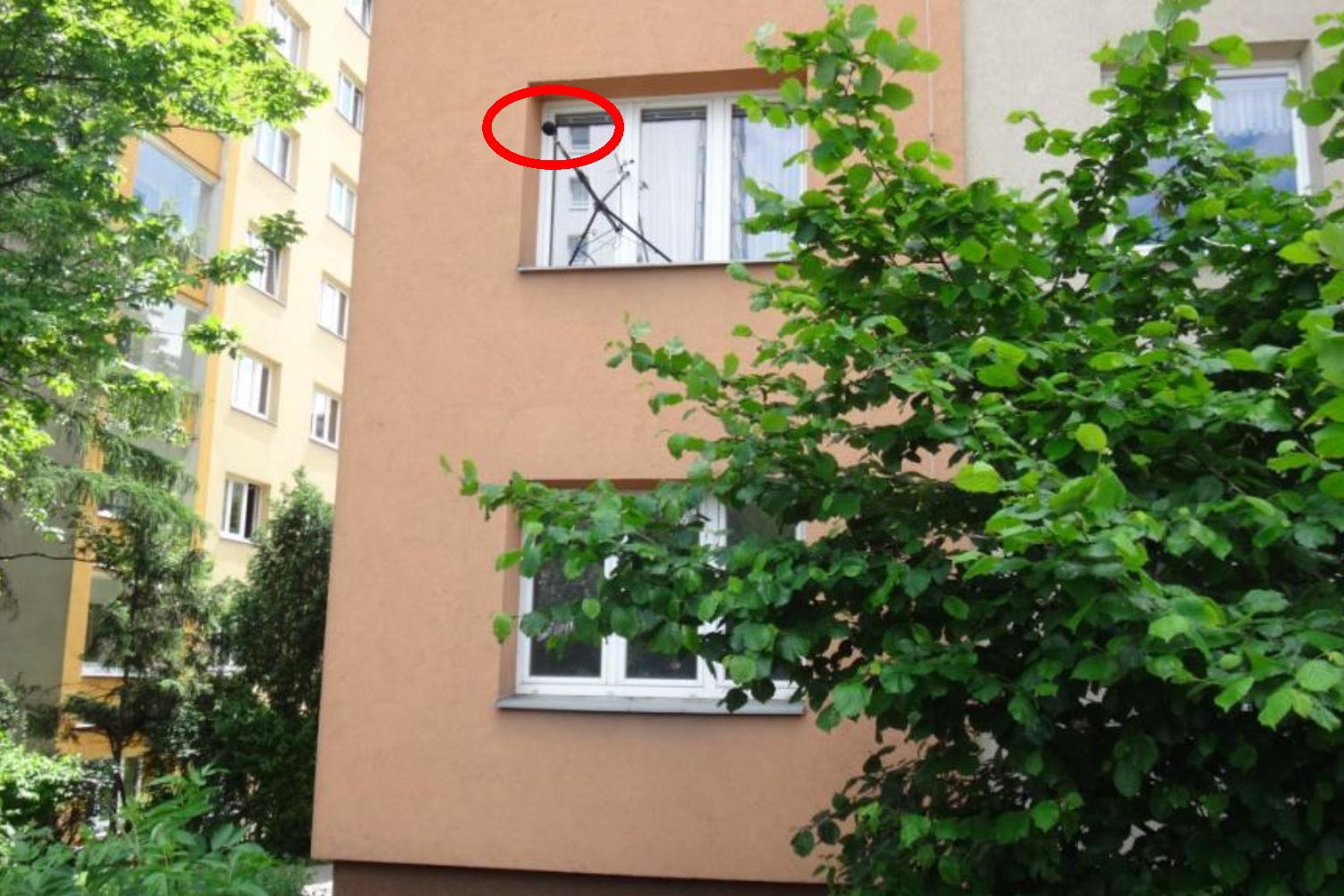 Mikrofon upevněn na stativu ve výšce 5,5 m nad terénem v úrovni oken obytných místností ve 2. NP, 2 m před fasádou, 11 m od osy nejbližšího jízdního pruhu ulice Evropská.