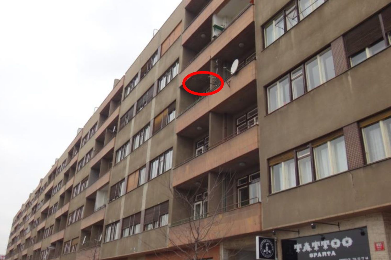 Mikrofon upevněn na stativu ve výšce 12,6 m nad terénem v úrovni oken obytných místností ve 4. NP, 2 m před fasádou, 7,5 m od osy nejbližšího jízdního pruhu ulice Milady Horákové.