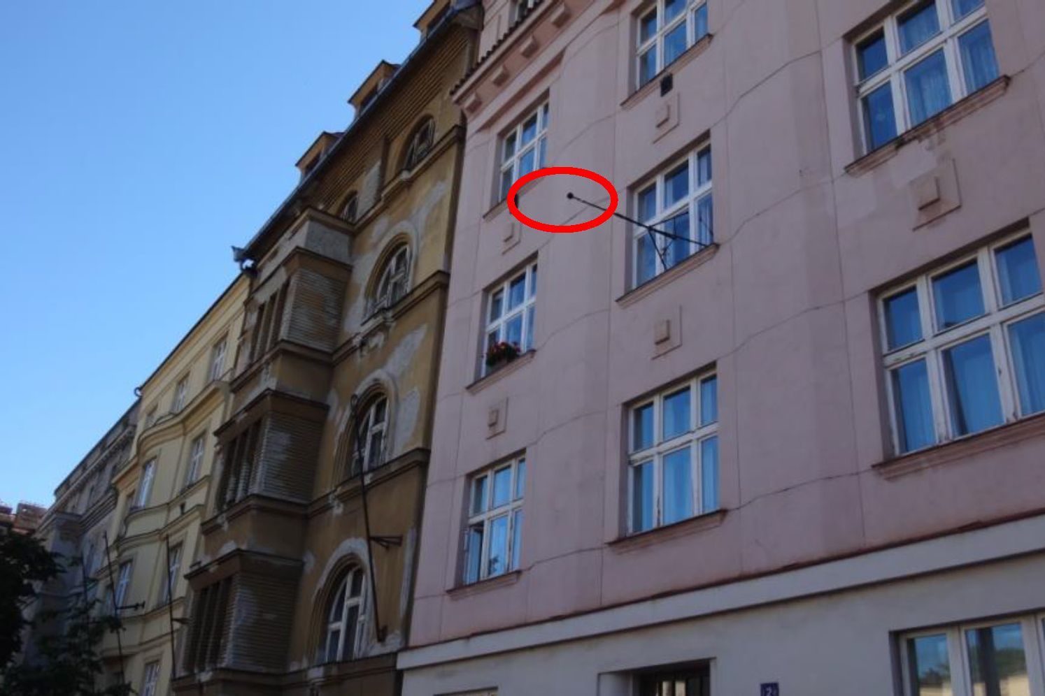 Mikrofon upevněn na stativu ve výšce 9,5 m nad terénem v úrovni oken obytných místností ve 3. NP, 2 m před fasádou, 9 m od osy nejbližšího jízdního pruhu ulice Svatovítská.