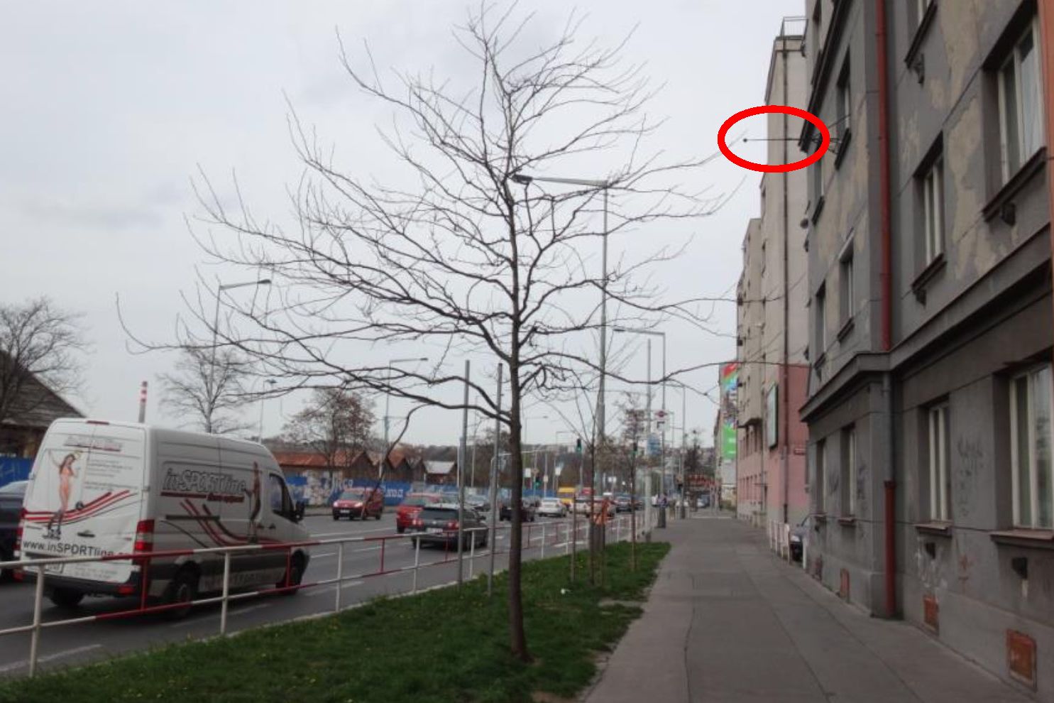 Mikrofon upevněn na stativu ve výšce 8,7 m nad terénem v úrovni oken obytných místností ve 3. NP, 2 m před fasádou, 8 m od osy nejbližšího jízdního pruhu ulice Argentinská.